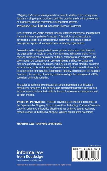 In the dynamic and volatile shipping industry, effective performance management is essential to an organization's success. This book is a practical guide to developing a holistic and comprehensive performance measurement and management system at managerial level in shipping organizations.