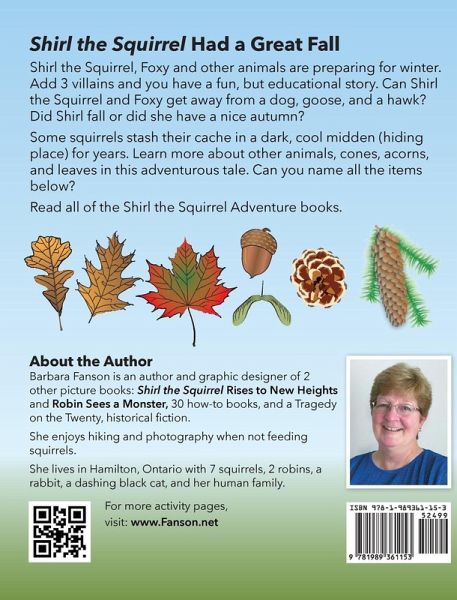 Shirl the Squirrel, Foxy and other animals are preparing for winter. Add 3 villains and you have a fun, but educational story. Can Shirl the Squirrel and Foxy get away from a dog, goose, and a hawk? Did Shirl fall or did she have a nice autumn? Some squirrels stash their cache in a dark, cool midden (hiding place) for years. Learn more about other animals, cones, acorns, and leaves in this adventurous tale. Read all of the Shirl the Squirrel Adventure books.