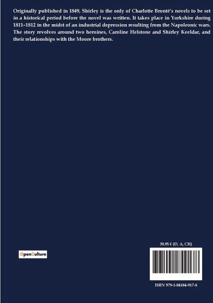Originally published in 1849, Shirley is the only of Charlotte Brontë¿s novels to be set in a historical period before the novel was written. It takes place in Yorkshire during 1811¿1812 in the midst of an industrial depression resulting from the Napoleonic wars. The story revolves around two heroines, Caroline Helstone and Shirley Keeldar, and their relationships with the Moore brothers.