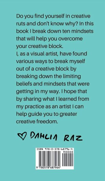 Do you find yourself in creative ruts and don't know why? In this book I break down ten mindsets that will help you overcome your creative block.I, as a visual artist, have found various ways to break myself out of a creative block by breaking down the limiting beliefs and mindsets that were getting in my way. I hope that by sharing what I learned from my practice as an artist I can help guide you to greater creative freedom.