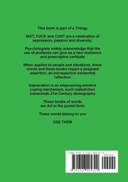 This book is part of a Trilogy SHIT, FUCK and CUNT are a celebration of expression, passion and diversity. Psychologists widely acknowledge that the use of profanity can give us a new resilience and prescriptive certitude. When applied to people and situations, these words and these books impart a poignant assertion, an introspective existential reflection. Imprecation is an empowering emotive coping mechanism, such malediction transcends 21st Century demography These books of Words are Art in the purest form