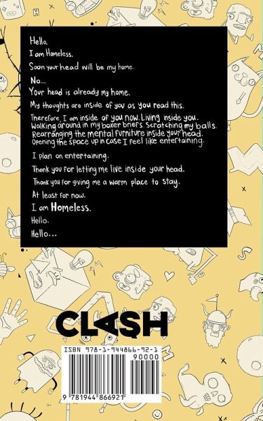 Hello. I am Homeless. Soon your head will be my home. No... Your head is already my home. My thoughts are inside of you as you read this. Therefore, I am inside of you now. Living inside you. Walking around in my boxer briefs. Scratching my balls. Rearranging the mental furniture inside your head. Opening the space up in case I feel like entertaining. I plan on entertaining. Thank you for letting me live inside your head. Thank you for giving me a warm place to stay. At least for now. I am Homeless. Hello. Hello...