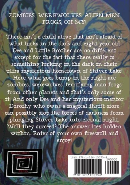 ZOMBIES, WEREWOLVES, ALIEN MEN FROGS, OH MY! There isn't a child alive that isn't afraid of what lurks in the dark and eight year old Dee and Little Brother are no different except for the fact that there really is something lurking in the dark in their ultra mysterious hometown of Shiver Lake! Here what goes bump in the night are zombies, werewolves, terrifying man frogs from other planets and that's only some of it! And only Dee and her mysterious mentor Dorothy who owns a magical thrift store can possibly stop the forces of darkness from plunging Shiver Lake into eternal night. Will they succeed? The answer lies hidden within. Enter of your own freewill and enjoy!