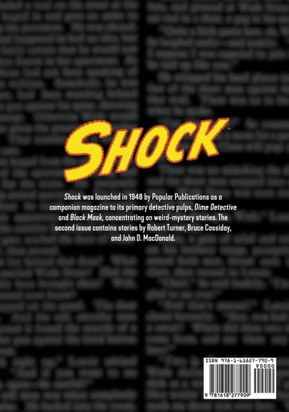 Shock was launched in 1948 by Popular Publications as a companion magazine to its primary detective pulps, Dime Detective and Black Mask, concentrating on weird-mystery stories. The second issue contains stories by Robert Turner, Bruce Cassiday, and John D. MacDonald.