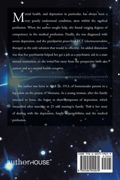Mental health, and depression in particular, has always been a very poorly understood condition, even within the medical profession. When the author sought help, she found varying degrees of competency in the medical profession. Finally, she was diagnosed with severe depression, and the psychiatrist prescribed ECT (electroconvulsive therapy) as the only solution that would be effective. An added dimension was that her psychiatrist helped her get a job as a psychiatric aid in a state mental institution, so she writes her story from the perspective both as a patient and as a mental health caregiver.