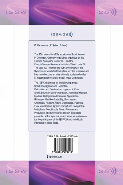 The 26th International Symposium on Shock Waves in Göttingen, Germany was jointly organised by the German Aerospace Centre DLR and the French-German Research Institute of Saint Louis ISL. The year 2007 marked the 50th anniversary of the Symposium, which first took place in 1957 in Boston and has since become an internationally acclaimed series of meetings for the wider Shock Wave Community. The ISSW26 focused on the following areas: Shock Propagation and Reflection, Detonation and Combustion, Hypersonic Flow, Shock Boundary Layer Interaction, Numerical Methods, Medical, Biological and Industrial Applications, Richtmyer Meshkov Instability, Blast Waves, Chemically Reacting Flows, Diagnostics, Facilities, Flow Visualisation, Ignition, Impact and Compaction, Multiphase Flow, Nozzles Flows, Plasmas and Propulsion. The two Volumes contain the papers presented at the symposium and serve as a reference for the participants of the ISSW 26 and individuals interested in these fields.