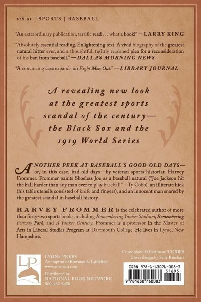 Another peek at baseball's good old days—or, in this case, bad old days—by veteran sports-historian Harvey Frommer. Frommer paints Shoeless Joe as a baseball natural ("Joe Jackson hit the ball harder than any man ever to play baseball"—Ty Cobb), an illiterate hick (his table utensils consisted of knife and fingers), and an innocent man snared by the greatest scandal in baseball history.