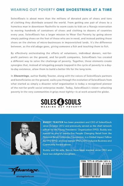In Shoestrings, author Buddy Teaster, along with the voices of Soles4Souls partners and beneficiaries on the ground, walks you through the evolution of Soles4Souls from what started as simply a disaster relief organization is today a recognized pioneer of the not-for-profit social enterprise model. Today, Soles4Souls's vision-attacking poverty in the very communities it grips most tightly-is at work around the globe.