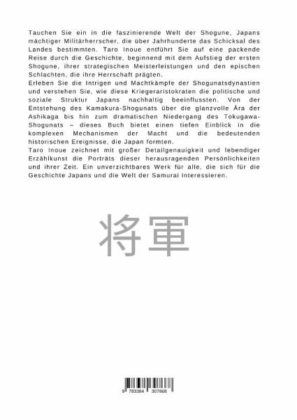 Tauchen Sie ein in die faszinierende Welt der Shogune, Japans mächtiger Militärherrscher, die über Jahrhunderte das Schicksal des Landes bestimmten. Taro Inoue entführt Sie auf eine packende Reise durch die Geschichte, beginnend mit dem Aufstieg der ersten Shogune, ihrer strategischen Meisterleistungen und den epischen Schlachten, die ihre Herrschaft prägten.Erleben Sie die Intrigen und Machtkämpfe der Shogunatsdynastien und verstehen Sie, wie diese Kriegeraristokraten die politische und soziale Struktur Japans nachhaltig beeinflussten. Von der Entstehung des Kamakura-Shogunats über die glanzvolle Ära der Ashikaga bis hin zum dramatischen Niedergang des Tokugawa-Shogunats - dieses Buch bietet einen tiefen Einblick in die komplexen Mechanismen der Macht und die bedeutenden historischen Ereignisse, die Japan formten.Taro Inoue zeichnet mit großer Detailgenauigkeit und lebendiger Erzählkunst die Porträts dieser herausragenden Persönlichkeiten und ihrer Zeit. Ein unverzichtbares Werkfür alle, die sich für die Geschichte Japans und die Welt der Samurai interessieren.