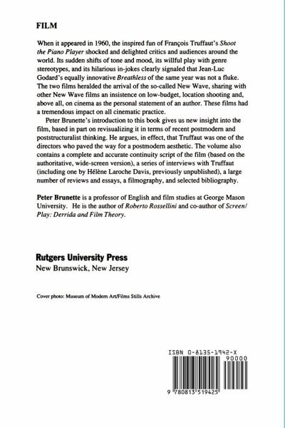 When it appeared in 1960, the inspired fun of François Truffaut's Shoot the Piano Player shocked and delighted critics and audiences around the world. Peter Brunette's introduction to this book gives us new insight into the film, based in part on revisualizing it in terms of recent postmodern and poststructuralist thinking.