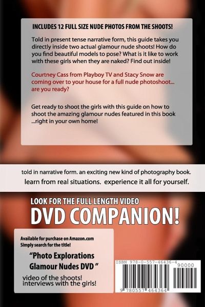 INCLUDES 12 FULL SIZE NUDE PHOTOS FROM THE SHOOTS! Told in present tense narrative form, this guide takes you directly inside two actual glamour nude shoots! How do you find beautiful models to pose? What is it like to work with these girls when they are naked? Find out inside! Courtney Cass from Playboy TV and Stacy Snow are coming over to your house for a full nude photoshoot... are you ready? Want video of the shoots? Look for the DVD companion of the same title at your favorite online bookstore!