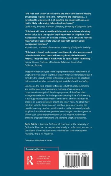 Building on the work of labor historians, industrial relations scholars, and institutional labor economists, this book offers not only a comprehensive analysis of the changing nature of shopfloor labor-management relations in the large manufacturing firms of this century, it also supplies empirical evidence of the effect of these institutional changes on labor productivity growth and injury rates. No other study has dealt with the broad sweep of shopfloor governence during the twentieth century, paid as careful attention to the process by which shopfloor institutional arrangements changed over these years, or offered hard evidence on the relationship between changing shopfloor institutions and changing shopfloor outcomes.