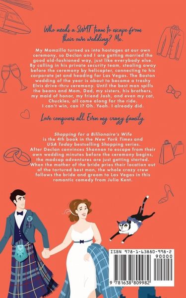 Who needs a SWAT team to escape from their own wedding? Me. My Momzilla turned us into hostages at our own ceremony, so Declan and I are getting married the good old-fashioned way, just like everybody else. By calling in his private security team, stealing away before the ceremony by helicopter, connecting to his corporate jet and heading for Las Vegas. The Boston wedding of the year is about to become a trashy Elvis drive-thru ceremony. Until the best man spills the beans and Mom, Dad, my sisters, his brothers, my maid of honor, my friend Josh, and even my cat, Chuckles, all come along for the ride. I can't win, can I? Oh. Yeah. I already did. Love conquers all. Even my crazy family. Shopping for a Billionaire's Wife is the 4th book in the New York Times and USA Today bestselling Shopping for a Billionaire series. After Declan convinces Shannon to escape from their own wedding minutes before the ceremony begins, the madcap adventures are just getting started. When the mother of the bride pries their location out of the tortured best man, the whole crazy crew follows the bride and groom to Las Vegas in this romantic comedy from Julia Kent. To escape her Momzilla, Shannon tries to elope with her billionaire fiancé, Declan. But when the secret gets out, she'll find she can't outrun her family in this "frothy, fabulous romantic comedy" (Kirkus Reviews)