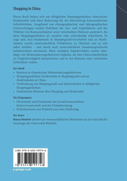 Dieses Buch befasst sich mit alltäglichen Shoppingpraktiken chinesischer Studierender und ihrer Bedeutung für die Entwicklung konsumistischer Subjektivitäten. Ausgehend von ethnographischen und videographischen Untersuchungen werden Praktiken des Aus- und Anprobierens und des Wählens von Konsumobjekten sowie verschiedene Diskurse analysiert, die diese Shoppingpraktiken als 'modern' oder 'rückständig' etikettieren. Es zeigt sich, dass Studierende in Shoppingmall-Geschäften und an Marktständen jeweils unterschiedliche Verhältnisse zu Objekten und zu sich selbst einüben - und damit auch unterschiedliche situationsspezifische Subjektivitäten entwickeln. Diese multiplen Subjektivitäten werden allerdings von Modernisierungsdiskursen begleitet, die ihre Unterschiedlichkeit als Ungleichzeitigkeit interpretieren und in den Rahmen einer 'kolonialen Zeitlichkeit' stellen.