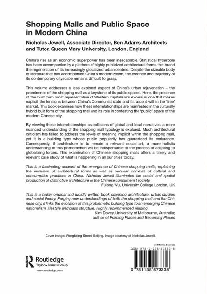 China's rise as an economic superpower has been inescapable. Statistical hyperbole has been accompanied by a plethora of highly publicized architectural forms that brand the regeneration of its increasingly globalized urban centres. Despite the sizeable body of literature that has accompanied China's modernization, the essence and trajectory of its contemporary cityscape remains difficult to grasp. This volume addresses a less explored aspect of China's urban rejuvenation - the prominence of the shopping mall as a keystone of its public spaces. Here, the presence of the built form most representative of Western capitalism's excess is one that makes explicit the tensions between China's Communist state and its ascent within the 'free' market. This book examines how these interrelationships are manifested in the culturally hybrid built form of the shopping mall and its role in contesting the 'public' space of the modern Chinese city. By viewing these interrelationships as collisions of global and local narratives, a more nuanced understanding of the shopping mall typology is explored. Much architectural criticism has failed to address the levels of meaning implicit within the shopping mall, yet it is a building type whose public popularity has guaranteed its endurance. Consequently, if architecture is to remain a relevant social art, a more holistic understanding of this phenomenon will be indispensable to the process of adapting to globalizing forces. This examination of Chinese shopping malls offers a timely and relevant case study of what is happening in all our cities today.