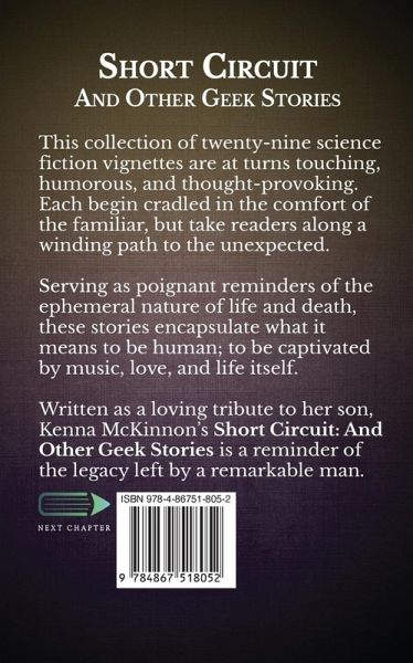 "We all have our memories; the guitar still sang..." This collection of twenty-nine science fiction vignettes are at turns touching, humorous, and thought-provoking. Each begin cradled in the comfort of the familiar, but take readers along a winding path to the unexpected. Serving as poignant reminders of the ephemeral nature of life and death, these stories encapsulate what it means to be human; to be captivated by music, love, and life itself. Written as a loving tribute to her son, Kenna McKinnon's Short Circuit: And Other Geek Stories is a reminder of the legacy left by a remarkable man.