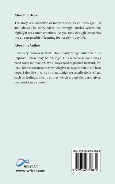 The story is a collection of moral stories for children aged 10 and above.The story takes us through stories where the highlight are certain emotions .As you read through the stories ,we all can get a bit of learning for our day to day life.