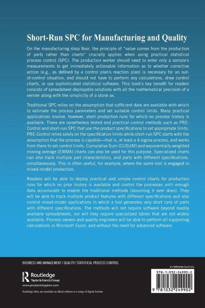 Readers will be able to deploy practical and simple control charts for production runs for which no prior history is available and control the processes until enough data accumulate to enable the traditional methods (assuming it ever does).