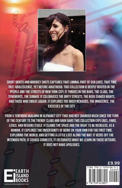 Short Skirts and Whiskey Shots captures that liminal part of our lives, that time past adolescence, yet before adulthood. This collection is deeply rooted in the people and the streets of New York City. It thrives in the bars, the clubs, the tenements, the subway. It celebrates the dirty streets, the beer soaked nights, and those who sweat liquor. It explores the idiosyncrasies, the innocence, the excesses of the city. From a tenement building in Alphabet City that had not changed much since the turn of the century to the trendy clubs and dark bars this collection explores, finds, loses, and regains itself. It claims the space and the right to be reckless, as a woman. It explores the uncertainty of being on your own for the first time, exploring the world, and getting a little lost along the way. It veers off the intended path, it course corrects, it celebrates what we learn on those detours. It does not make apologies.
