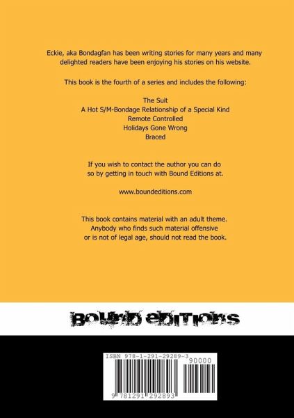 Eckie, aka Bondagfan has been writing stories for many years and many delighted readers have been enjoying his stories on his website. This book is the fourth of a series and includes the following: The Suit A Hot S/M-Bondage Relationship of a Special Kind Remote Controlled Holidays Gone Wrong Braced