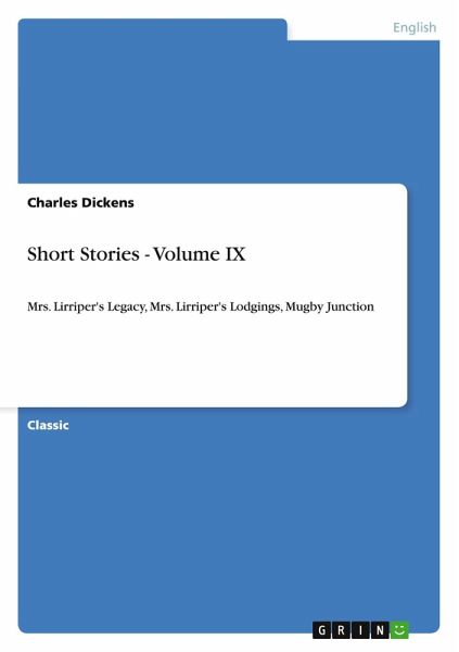 Classic from the year 2009 in the subject English Language and Literature Studies - Literature, , language: English, abstract: Mrs. Lirriper's Legacy*** CHAPTER I - MRS. LIRRIPER RELATES HOW SHE WENT ON, AND WENT OVER*** Ah! It's pleasant to drop into my own easy-chair my dear though a little palpitating what with trotting up-stairs and what with trotting down, and why kitchen stairs should all be corner stairs is for the builders to justify though I do not think they fully understand their trade and never did, else why the sameness and why not more conveniences and fewer draughts and likewise making a practice of laying the plaster on too thick I am well convinced which holds the damp, and as to chimney-pots putting them on by guess-work like hats at a party and no more knowing what their effect will be upon the smoke bless you than I do if so much, except that it will mostly be either to send it down your throat in a straight form or give it a twist before it goes there. [...] *** Mrs. Lirriper's Lodgings*** CHAPTER I - HOW MRS. LIRRIPER CARRIED ON THE BUSINESS*** Whoever would begin to be worried with letting Lodgings that wasn't a lone woman with a living to get is a thing inconceivable to me, my dear; excuse the familiarity, but it comes natural to me in my own little room, when wishing to open my mind to those that I can trust, and I should be truly thankful if they were all mankind, but such is not so, for have but a Furnished bill in the window and your watch on the mantelpiece, and farewell to it if you turn your back for but a second, however gentlemanly the manners; nor is being of your own sex any safeguard, as I have reason, in the form of sugar-tongs to know, for that lady (and a fine woman she was) got me to run for a glass of water, on the plea of going to be confined, which certainly turned out true, but it was in the Station-house.[...] *** Mugby Junction*** Chapter I--Barbox Brothers*** "Guard! What place is this?" "Mugby Junction, sir." "A windy place!" "Yes, it mostly is, sir." "And looks comfortless indeed!" "Yes, it generally does, sir." "Is it a rainy night still?" "Pours, sir." "Open the door. I'll get out." "You'll have, sir," said the guard, glistening with drops of wet, and looking at the tearful face of his watch by the light of his lantern as the traveller descended, "three minutes here." "More, I think.--For I am not going on." "Thought you had a through ticket, sir?" "So I have, but I shall sacrifice the rest of it. I want my luggage." [...]