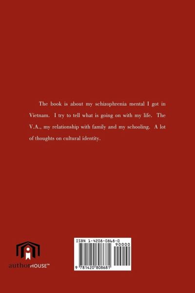 The book is about my schizophrenia mental I got in Vietnam. I try to tell what is going on with my life. The V.A., my relationship with family and my schooling. A lot of thoughts on cultural identity.