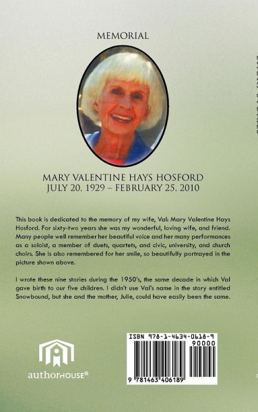 I wrote this nine stories during the 1950's. I wrote for my chlidren to read and some cases I read them to my younger children. I filed them all the way and didn't find them again until recently. At which point, I revised and edited the nine stories for publication. Each of the nine stories is a fictional piece, a few of which are based on events in my life and all are based on events in 1940's and 1950's.
