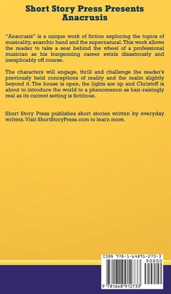 "Anacrusis" is a unique work of fiction exploring the topics of musicality, anarchic hand and the supernatural. This work allows the reader to take a seat behind the wheel of a professional musician as his burgeoning career swirls disastrously and inexplicably off course. The characters will engage, thrill and challenge the reader’s previously held conceptions of reality and the realm slightly beyond it. The house is open, the lights are up and Christoff is about to introduce the world to a phenomenon as hair-raisingly real as its current setting is fictitious. Short Story Press publishes short stories written by everyday writers.