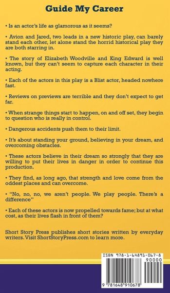 • Is an actor’s life as glamorous as it seems? • Avion and Jared, two leads in a new historic play, can barely stand each other, let alone stand the horrid historical play they are both starring in. • The story of Elizabeth Woodville and King Edward is well known, but they can’t seem to capture each character in their acting. • Each of the actors in this play is a Blist actor, headed nowhere fast. • Reviews on previews are terrible and they don’t expect to get far. • When strange things start to happen, on and off set, they begin to question who is really in control. • Dangerous accidents push them to their limit. • It’s about standing your ground, believing in your dream, and overcoming obstacles. • These actors believe in their dream so strongly that they are willing to put their lives in danger in order to continue this production. • They find, as long ago, that strength and love come from the oddest places and can overcome. • "No, no, no, we aren’t people. We play people. There’s a difference" • Each of these actors is now propelled towards fame; but at what cost, as their lives flash in front of them? Short Story Press publishes short stories written by everyday writers.