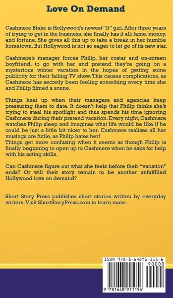 Cashmere Blake is Hollywood's newest "It" girl. After 3 years of trying to get in the business, she finally has it all; fame, money and fortune. She gives all of this up to take a break in her humble hometown. But Hollywood is not so easy to let go of its new star. • Cashmere's manager forces Philip, her costar and on-screen boyfriend, to go with her and pretend they're going on a mysterious winter vacation in the hopes of getting some publicity for their failing TV show. This causes complications as Cashmere has secretly been feeling something every time she and Philip filmed a scene. • Things heat up when their managers and agencies keep pressuring them to date. It doesn't help that Philip thinks she's trying to steal his spotlight, and thus spends his time ignoring Cashmere during their pretend vacation. • Every night, Cashmere watches Philip sleep and imagines what life would be like if he could be just a little bit nicer to her. Cashmere realizes all her musings are futile as Philip hates her! Things get more confusing when it seems as though Philip is finally beginning to open up to Cashmere when he asks for help with his acting skills. Can Cashmere figure out what she feels before their "vacation" ends? Or will their story remain to be another unfulfilled Hollywood love on demand? Short Story Press publishes short stories written by everyday writers.