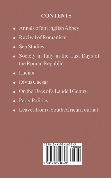CONTENTS Annals of an English Abbey Revival of Romanism Sea Studies Society in Italy in the Last Days of the Roman Republic Lucian Divus Caesar On the Uses of a Landed Gentry Party Politics Leaves from a South African Journal