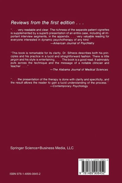 xii the evaluations, techniques, and outcome have helped to document the efficacy of their therapeutic modalities. In addition, many good books and articles have been published introducing new concepts, such as the importance of systematic case studies and personality styles by Horowitz, a variety of brief therapies by Budman, and an integrating model of time-limited psychotherapy by Strupp, to men tion only a few. The investigation of the efficacy of short-term anxiety-provoking psychotherapy (STAPP), which is the subject of this book, has con tinued during the last eight years, particularly in reference to pa tients with unresolved Oedipal conflicts. The chapter on outcome has therefore been expanded to include some of our findings. Cautious attempts have also been made to utilize focal and in novating techniques for the treatment of individuals with borderline as well as compulsive personalities. In this second edition an effort has been made to present the specific technical factors which seem to have a therapeutic effect, such as problem solving, self-understanding, and new learning, and which are utilized by the patients to solve new emotional conflicts long after the end of their treatment. Chapters on the treatment of elderly patients and the handling of individuals with physical symptomatology have been added; a history of the extensive treatment of a male patient has been pre sented to complement the discussion of the therapy of my female patient which appears in Appendix I.