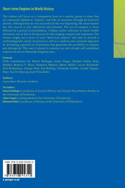 The volume will focus on a comparative level on a specific group of states that are commonly labelled as "empires" and that we encounter through all historical periods. Although they are very successful at the very beginning, like most empires are, this success is very ephemeral and transient. The era of conquest is never followed by a period of consolidation. Collapse and/or reduction to much smaller dimension run as fast as the process of wide-ranging conquest and expansion. The volume singles out a series of such "short-term empires" and aims to provide a methodologically clearly structured as well as a uniform and consistent approach by developing a general set of questions that guarantee the possibility to compare and distinguish. This way it intends to examine not only already well established empires but also to illuminate forgotten ones.