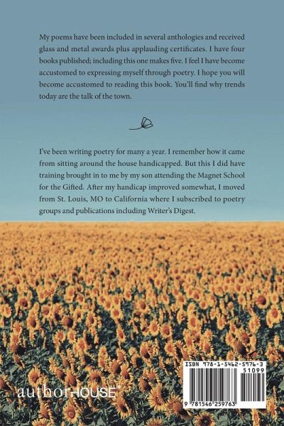 My poems have been included in several anthologies and received glass and metal awards plus applauding certificates. I have four books published; including this one makes five. I feel I have become accustomed to expressing myself through poetry. I hope you will become accustomed to reading this book. You'll find why trends today are the talk of the town.