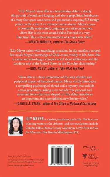 "Lily Meyer writes with transfixing concision. In this excellent, assured first novel, Meyer's knowledge of Chile comes vividly to life. Short War is astute and absorbing, a complex novel about adolescence and the insidious role of the United States in the Pinochet dictatorship." -Idra Novey, author of Take What You Need
