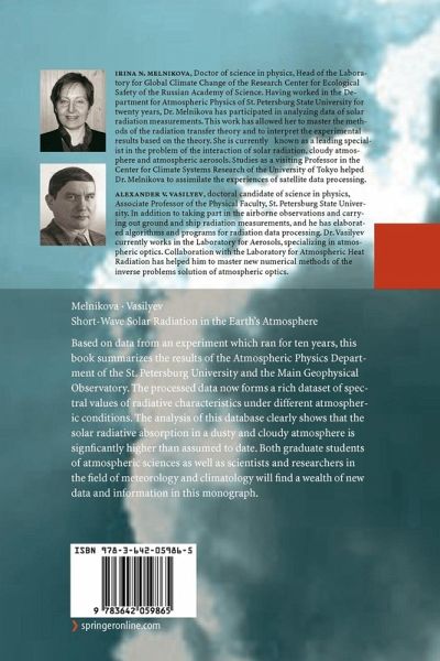 Based on data from an experiment which ran for ten years, this book summarizes the results of the Atmospheric Physics Department of the St. Petersburg University and the Main Geophysical Observatory. The processed data now forms a rich dataset of spectral values of radiative characteristics under different atmospheric conditions. The analysis of this database clearly shows that the solar radiative absorption in a dusty and cloudy atmosphere is significantly higher than assumed to date. Both graduate students of atmospheric sciences as well as scientists and researchers in the field of…mehr