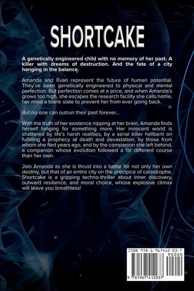 A genetically engineered child with no memory of her past. A killer with dreams of destruction. And the fate of a city hanging in the balance. Amanda and Evan represent the future of human potential. They've been genetically engineered to physical and mental perfection. But perfection comes at a price, and when Amanda's grows too high, she escapes the research facility she calls home, her mind a blank slate to prevent her from ever going back. But no one can outrun their past forever... With the truth of her existence nipping at her brain, Amanda finds herself longing for something more. Her innocent world is shattered by life's harsh realities, by a serial killer hellbent on fulfilling a prophecy of death and devastation, by those from whom she fled years ago, and by the companion she left behind, a companion whose evolution followed a far different course than her own. Join Amanda as she is thrust into a battle for not only her own destiny, but that of an entire city on the precipice of catastrophe. Shortcake is a gripping techno-thriller about inner discovery, outward resilience, and moral choice, whose explosive climax will leave you breathless!