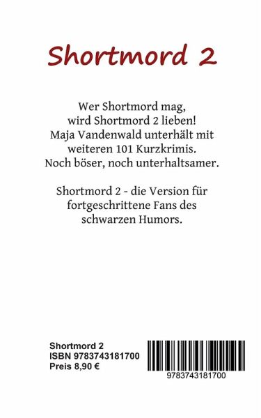 Eine Sammlung von 101 gereimten Kurzkrimis mit jeder Menge schwarzem Humor, bei dem kein Auge trocken bleibt.Wer nicht zu zartbesaitet ist und gern schallend lacht, der wird hier sicher fündig werden.Wer Shortmord mag, wird Shortmord 2 lieben.
