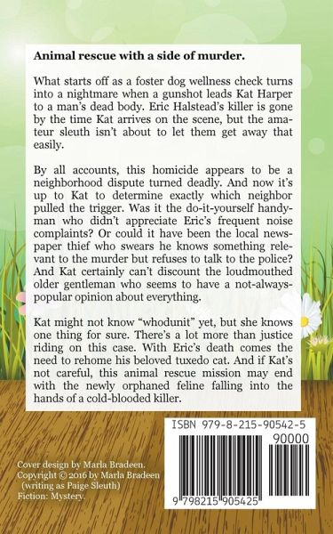 Animal rescue with a side of murder. What starts off as a foster dog wellness check turns into a nightmare when a gunshot leads Kat Harper to a man's dead body. Eric Halstead's killer is gone by the time Kat arrives on the scene, but the amateur sleuth isn't about to let them get away that easily. By all accounts, this homicide appears to be a neighborhood dispute turned deadly. And now it's up to Kat to determine exactly which neighbor pulled the trigger. Was it the do-it-yourself handyman who didn't appreciate Eric's frequent noise complaints? Or could it have been the local newspaper thief who swears he knows something relevant to the murder but refuses to talk to the police? And Kat certainly can't discount the loudmouthed older gentleman who seems to have a not-always-popular opinion about everything. Kat might not know "whodunit" yet, but she knows one thing for sure. There's a lot more than justice riding on this case. With Eric's death comes the need to rehome his beloved tuxedo cat. And if Kat's not careful, this animal rescue mission may end with the newly orphaned feline falling into the hands of a cold-blooded killer. All of the Cozy Cat Caper Mystery books can be enjoyed as standalones but will be better appreciated as part of the series. The books are light, fun cozy mysteries featuring an animal-loving female amateur sleuth, lovable and not-so-lovable quirky characters, and a page-turning mystery that needs solving. None of the books include cliffhangers, bad language, or graphic scenes.
