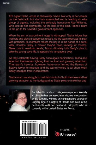 FBI agent Tasha Jones is absolutely driven. Not only is her career on the fast-tracked, but she has assembled and is leading an elite group of agents, including the strikingly handsome Abe Williams, who acts as her bodyguard. As the best of the best, Tasha's team is the go-to for powerful government agencies. When the son of a prominent judge is kidnapped, Tasha follows her instincts and plans a dangerous rescue. As the team executes its plan with precision, its members realize the boy is in the hands of a serial killer, Houston Sealy, a maniac they've been tracking for months. Never one to overlook details, Tasha ultimately foils Sealy's plan to take the young boy's life. It appears his rampage is over. As they celebrate having Sealy once again behind bars, Tasha and Abe find themselves fighting their mutual and growing attraction. The team's heroics, however, have only fanned the flames of Sealy's fervor for revenge, and the team's victory is cut short when Sealy escapes from incarceration. Tasha must now struggle to maintain control of both the case and her growing attraction to her bodyguard as Sealy plots to make her pay.