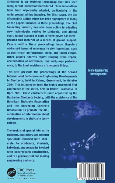 Marking a crucial point in the sharing of research, this cutting-edge text spearheads advances in cross-industry expertise. Presenting papers addressing topics ranging from repair, accreditation of nozzlemen, and early-age performance, to the blast resistance of shotcrete linings, the work draws on contributions from individuals across the shotcrete industry, including contractors, material suppliers and consultants. A key text in its field, this is a book that will bring readers fully up-to-date with all levels of industry and research developments.