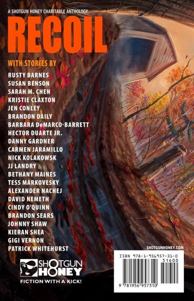 23 tales of crime collected in the 4th volume of the Shotgun Honey Presents anthology series. Featuring Brom Stoker nominated short story "The Thing I found Along a Dirt Patch Road" by Cindy O'Quinn. Including stories from Rusty Barnes, Susan Benson, Sarah M. Chen, Kristie Claxton, Jen Conley, Brandon Daily, Barbara DeMarco-Barrett, Hector Duarte Jr., Danny Gardner, Carmen Jaramillo, Nick Kolakowski, JJ Landry, Bethany Maines, Tess Makavesky, Alexander Nachej, Brandon Sears, Johnny Shaw, Kieran Shea, Gigi Vernon, and Patrick Whitehurst. Originally published in 2020, re-issued with cover by Ray Dillon. Edited by series editor Ron Earl Phillips.