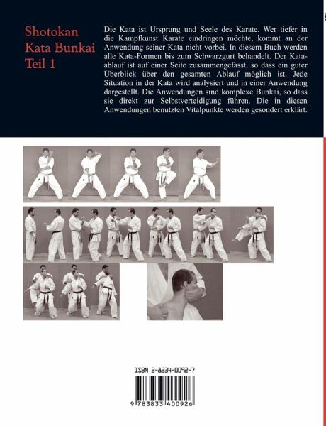 Die Kata ist Ursprung und Seele des Karate. Wer tiefer in die Kampfkunst Karate eindringen möchte, kommt an der Anwendung seiner Kata nicht vorbei. In diesem Buch werden alle Kata-Formen bis zum Schwarzgurt behandelt. Der Kataablauf ist auf einer Seite zusammengefasst, os dass ein guter Überblick über den gesamten Ablauf möglich ist. Jede Situation in der Kata wird analysiert und in einer Anwendung dargestellt. Die Anwendungen sind komplexe Bunkai, so dass sie direkt zur Selbstverteidigung führen. Die in diesen Anwendungen benutzte Vitalpunkte werden gesondert erklärt.
