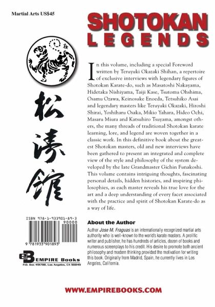In this volume, including a special Foreword written by Teruyuki Okazaki Shihan, a repertoire of exclusive interviews with legendary figures of Shotokan Karate-do, such as Masatoshi Nakayama, Hidetaka Nishiyama, Taiji Kase, Tsutomu Ohshima, Osamu Ozawa, Keinosuke Enoeda, Tetsuhiko Asai and legendary masters like Teruyuki Okazaki, Hiroshi Shirai, Yoshiharu Osaka, Mikio Yahara, Hideo Ochi, Masaru Miura and Katsuhiro Tsuyama, amongst others, the many threads of traditional Shotokan karate learning, lore, and legend are woven together in a classic work. In this definitive book about the greatest Shotokan masters, old and new interviews have been gathered to present an integrated and complete view of the style and philosophy of the system developed by the late Grandmaster Gichin Funakoshi. This volume contains intriguing thoughts, fascinating personal details, hidden histories, and inspiring philosophies, as each master reveals his true love for the art and a deep understanding of every facet associated with the practice and spirit of Shotokan Karate-do as a way of life.