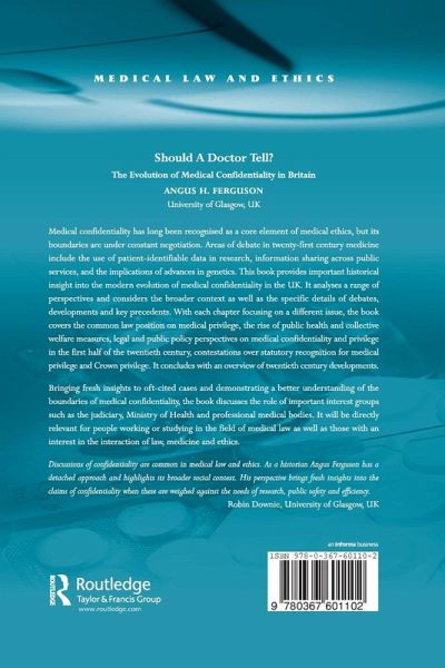 'Discussions of confidentiality are common in medical law and ethics. As a historian Angus Ferguson has a detached approach and highlights its broader social context. His perspective brings fresh insights into the claims of confidentiality when these are weighed against the needs of research, public safety and efficiency.' Robin Downie, University of Glasgow, UK 'Ferguson's study, in elucidating the historical power struggles between medical and legal authority over sensitive patient information, makes an insightful contribution to these ongoing discussions.' Bulletin of the History of Medicine