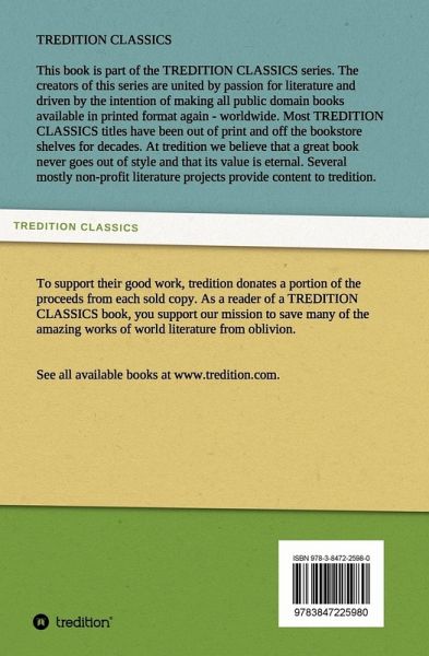 This book is part of the TREDITION CLASSICS series. The creators of this series are united by passion for literature and driven by the intention of making all public domain books available in printed format again - worldwide. At tredition we believe that a great book never goes out of style. Several mostly non-profit literature projects provide content to tredition. To support their good work, tredition donates a portion of the proceeds from each sold copy. As a reader of a TREDITION CLASSICS book, you support our mission to save many of the amazing works of world literature from oblivion.