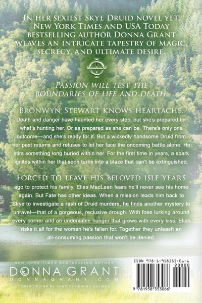 In her sexiest Skye Druid novel yet, New York Times and USA Today bestselling author Donna Grant weaves an intricate tapestry of magic, secrecy, and ultimate desire. Passion will test the boundaries of life and death. Bronwyn Stewart knows heartache. Death and danger have haunted her every step, but she's prepared for what's hunting her. Or as prepared as she can be. There's only one outcome-and she's ready for it. But a wickedly handsome Druid from her past returns and refuses to let her face the oncoming battle alone. He stirs something long buried within her. For the first time in years, a spark ignites within her that soon turns into a blaze that can't be extinguished. Forced to leave his beloved isle years ago to protect his family, Elias MacLean fears he'll never see his home again. But Fate has other ideas. When a mission leads him back to Skye to investigate a rash of Druid murders, he finds another mystery to unravel-that of a gorgeous, reclusive drough. With foes lurking around every corner and an undeniable hunger that grows with every kiss, Elias risks it all for the woman he's fallen for. Together they unleash an all-consuming passion that won't be denied.
