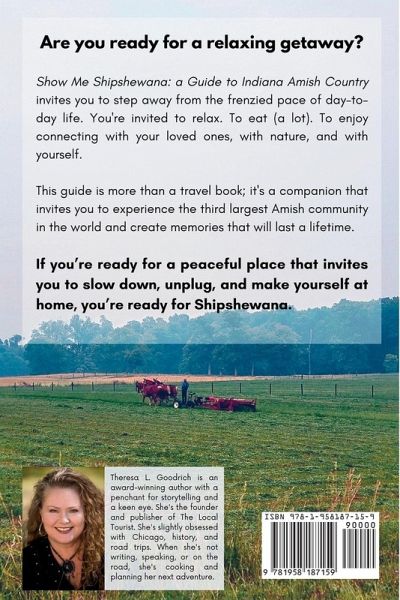 Are you ready for a relaxing getaway? Show Me Shipshewana: a Guide to Indiana Amish Country invites you to step away from the frenzied pace of day-to-day life. You're invited to relax. To eat (a lot). To enjoy connecting with your loved ones, with nature, and with yourself. Show Me Shipshewana is more than a travel book; it's a companion that invites you to experience the third largest Amish community in the world and create memories that will last a lifetime. Here's What's InsideIntroduction to Amish Country Who are the Amish, and why are there so many in Indiana? Learn the stories of the towns of LaGrange County, including why there's one named Mongo and how to pronounce Wolcottville (it's not what you think) Discover the proper etiquette when dining in an Amish home Find out why their peanut butter tastes so darn good How to navigate the Midwest's largest flea market Tips for shopping in Amish country Go beyond the buggy: there's more to see in Shipshewana The basics: weather, best time to visit, etc Answers to your FAQs about visiting Suggested driving tours And much more! There are even planning and journal pages, so you can easily plan your trip to Shipshewana, and then remember everything you experienced long after you return home. You'll be amazed at how much Shipshewana offers.