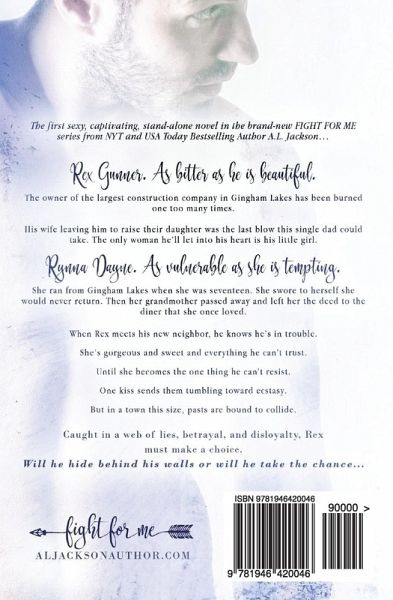 The first sexy, captivating, stand-alone novel in the brand-new FIGHT FOR ME series from NYT & USA Today Bestselling Author A.L. Jackson . . . Rex Gunner. As bitter as he is beautiful. The owner of the largest construction company in Gingham Lakes has been burned one too many times. His wife leaving him to raise their daughter was the last blow this single dad could take. The only woman he'll let into his heart is his little girl. Rynna Dayne. As vulnerable as she is tempting. She ran from Gingham Lakes when she was seventeen. She swore to herself she would never return. Then her grandmother passed away and left her the deed to the diner that she once loved. When Rex meets his new neighbor, he knows he's in trouble. She's gorgeous and sweet and everything he can't trust.Until she becomes the one thing he can't resist. One kiss sends them tumbling toward ecstasy. But in a town this size, pasts are bound to collide. Caught in a web of lies, betrayal, and disloyalty, Rex must make a choice. Will he hide behind his walls or will he take the chance . . .
