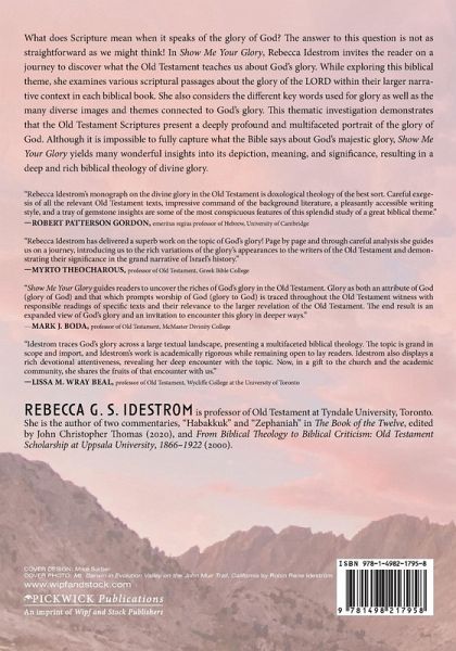 What does Scripture mean when it speaks of the glory of God? The answer to this question is not as straightforward as we might think! In Show Me Your Glory, Rebecca Idestrom invites the reader on a journey to discover what the Old Testament teaches us about God's glory. While exploring this biblical theme, she examines various scriptural passages about the glory of the LORD within their larger narrative context in each biblical book. She also considers the different key words used for glory as well as the many diverse images and themes connected to God's glory. This thematic investigation demonstrates that the Old Testament Scriptures present a deeply profound and multifaceted portrait of the glory of God. Although it is impossible to fully capture what the Bible says about God's majestic glory, Show Me Your Glory yields many wonderful insights into its depiction, meaning, and significance, resulting in a deep and rich biblical theology of divine glory.